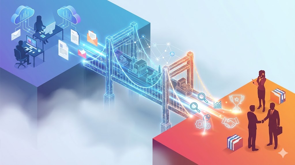 会期中の名刺交換や現地での口頭説明が中心となり、遠方や多忙なキーパーソンとは接点が持てず、会期後のアプローチも非効率になってしまう。